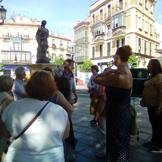 El pasado mes de marzo los alumnos del plan educativo de inglés básico asistieron a una visita guiada en inglés y español por el barrio de Santa Cruz en Servilla. Atentamente escucharon las explicaciones que el guía realizaba en ambos idiomas. La experiencia fue muy satisfactoria tanto para el alumnado como para ambas maestra que los acompañaban al comprobar estos podían entender gran parte del contenido de la visita.